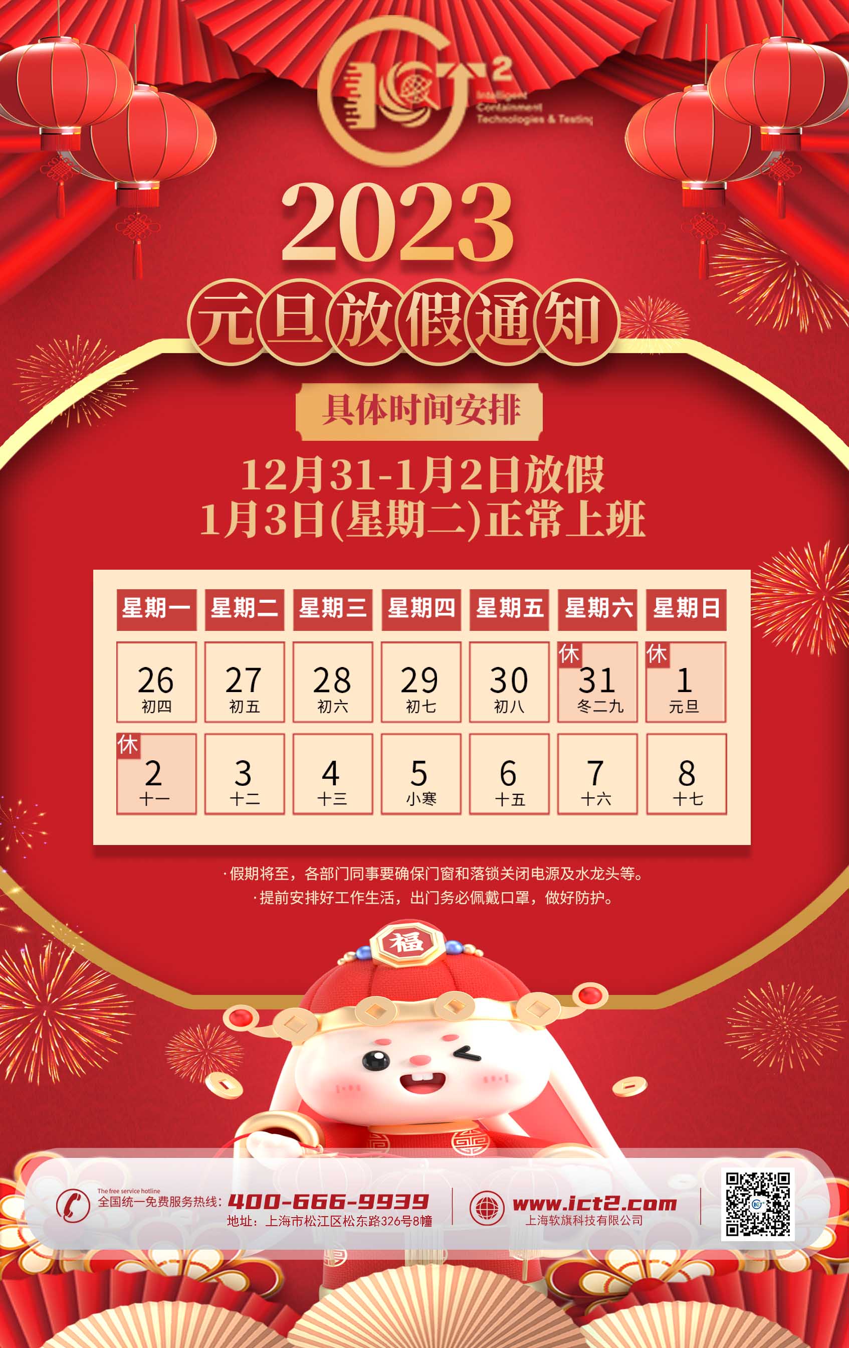 根据《国务院办公厅关于2023年部分节假日安排的通知》精神,按照我司安排和工作实际,现将2023年元旦节放假事宜通知如下:
