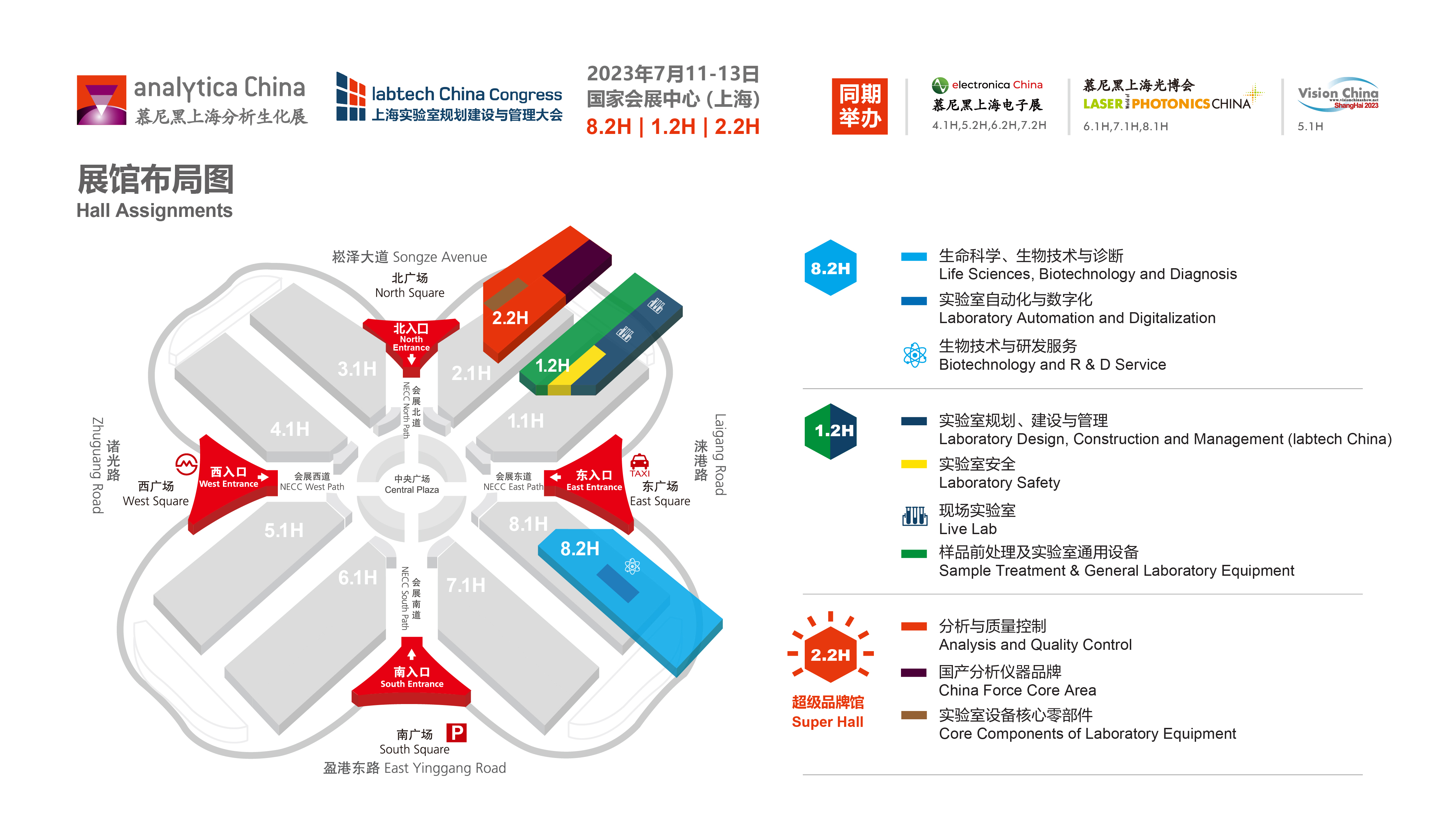 The 11th International Trade Fair for Laboratory Technology, Analysis, Biotechnology and Diagnostics will be held from July 11 to 13, 2023 at the National Convention and Exhibition Center (Shanghai) , China at 8.2H, 1.2H, and 2.2H.