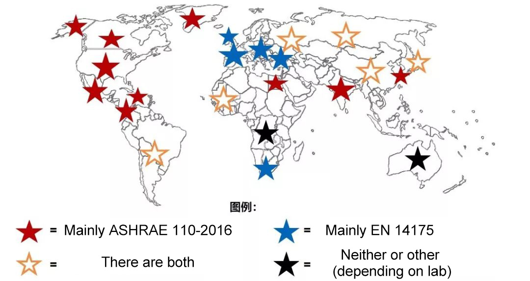 The world map describes the distribution of fume hood test methods [1]