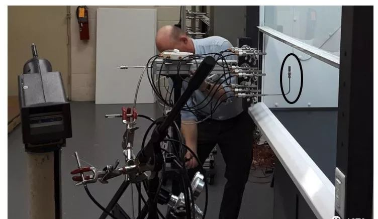 The circle part is an ionization leak detector used as a sensor in the flow Sciences en 14175 test. During the test, the tip tube of the diffuser is connected to the sampling device.