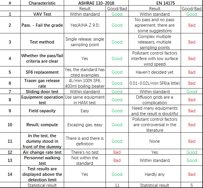 The remaining problem is that most en 14175 tests show that no tracer gas escapes under any of the above many tests. In other words, en 14175 has a large difference in the performance of fume hoods from one design to another.