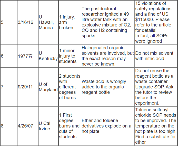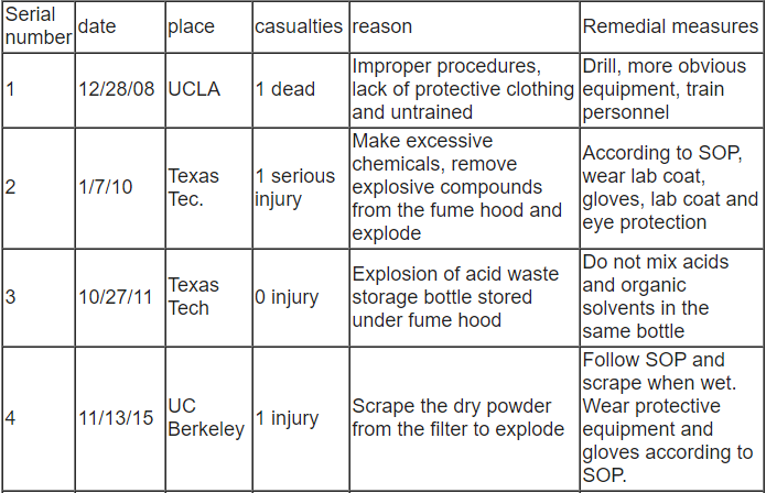 Michael Wright [1] correctly analyzes the security perspective of this tragedy: "our own (Security) investigation is about causality and prevention, not guilt. We believe in accountability, and we support appropriate civil and criminal penalties - as I think they are here (UCLA) 。 But this is not our goal. The real problem is how to prevent this tragedy in the future. From what I have seen, academic laboratories have some solutions. I am not aware of any industrial laboratory director claiming that he or she is not responsible for safety. PI (chief investigator) is also responsible. We will not make progress without recognition. "