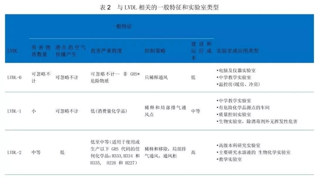 This guide does not provide a method for assessing the risks associated with airborne chemical hazards, exposure to other laboratory hazards, or the required performance level of the system. The five lvdls outlined in this document may not be consistent with the risk and security levels described by other organizations. However, the classification system described here can be used as a basis for the design and operation of laboratories and the evaluation of the protection capacity of existing laboratories. Health and safety experts should be consulted when investigating and identifying risks associated with hazardous processes and matching them with appropriate LVDL and the interaction of lacs with other protective measures, such as emergency plans and personal protective equipment.