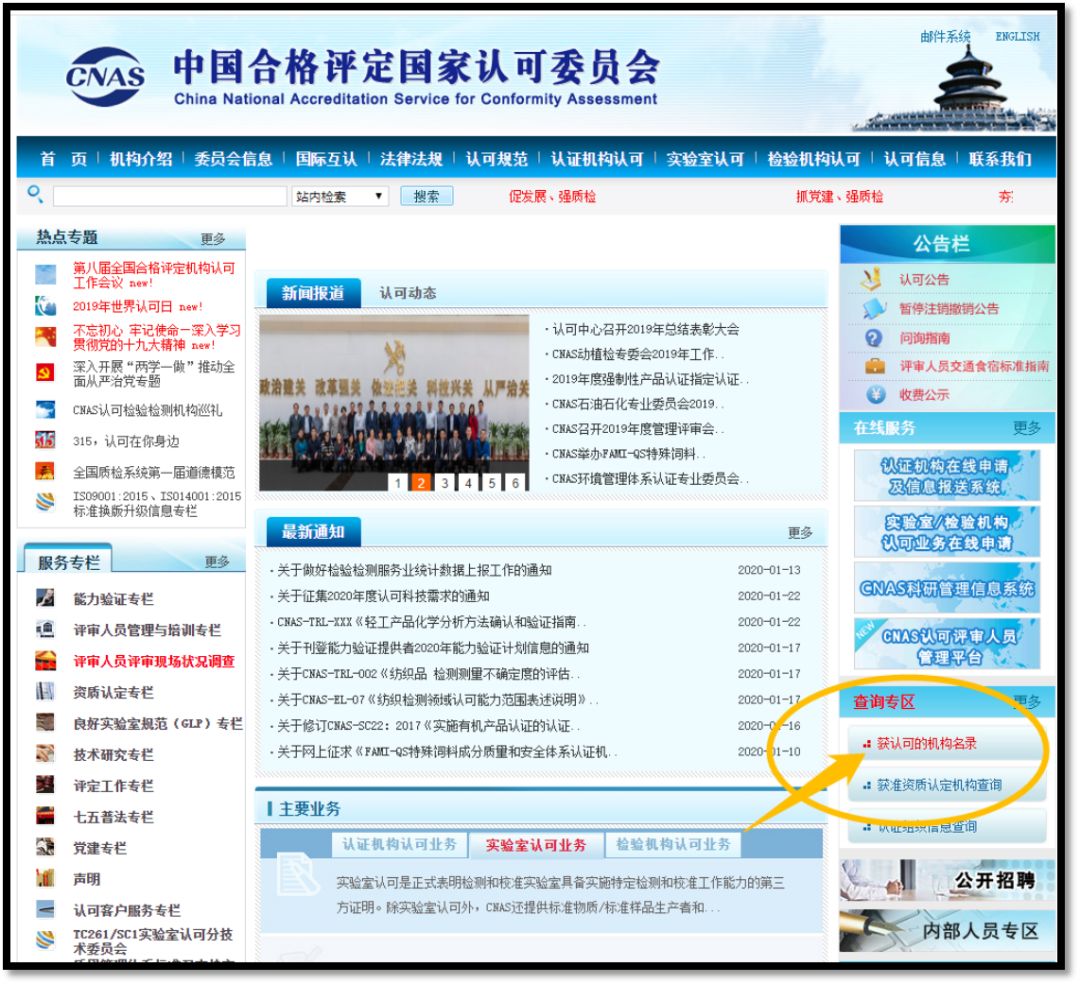 1. Enter CNAS https://www.cnas.org.cn/, official website